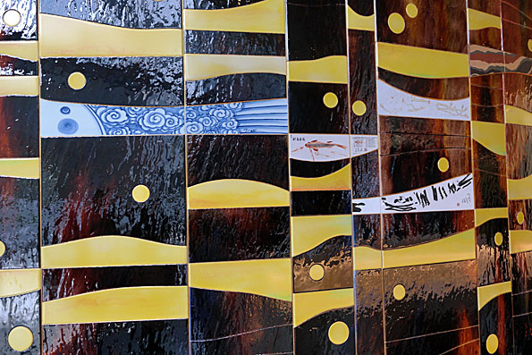 Der Shanghai Tower ist mit einer Höhe von 632 Metern seit dem Richtfest im August 2014 das höchste Gebäude Chinas und das zweithöchste der Erde. Den Eingangsbereich gestaltete Prof. Yin Jia mit der Installation "Happy Fish". The "Shanghai Tower" is with its height of 632 meters since the opening in 2014 the highest building in China and the second highest building in the world. The entrance area was desiged by Prof. Yin Jia with his mural artwork "Happy Fish". |